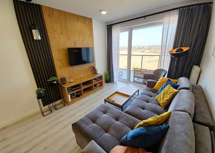 Przytulny Apartament 406 IV Pietro Kołobrzeg, som ligger i Kołobrzeg 3 km från Mariakyrkan, erbjuder spafaciliteter som avsvalkningspool, hydromassagebadkar och bastu. Den här lägenheten har en terrass och en avsvalkningspool för gästernas ultimata avkoppling.